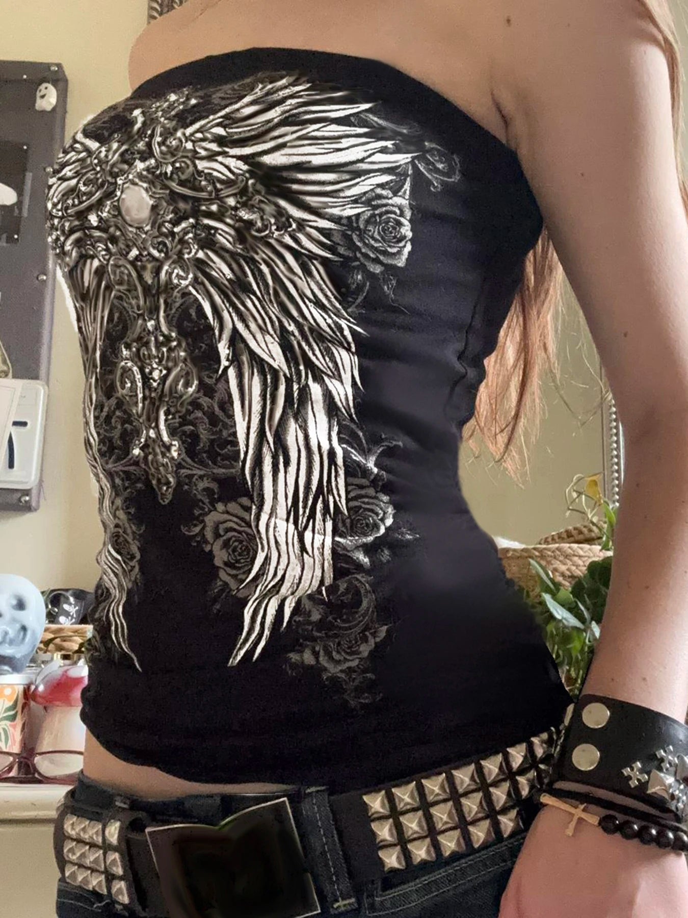 Perfect for spring or summer, this top serves that dark-girl energy while staying lightweight and breathable. Pair it with pleated mini skirts, platform boots, or low-rise cargos for the ultimate “I’m cute but I bite” look.